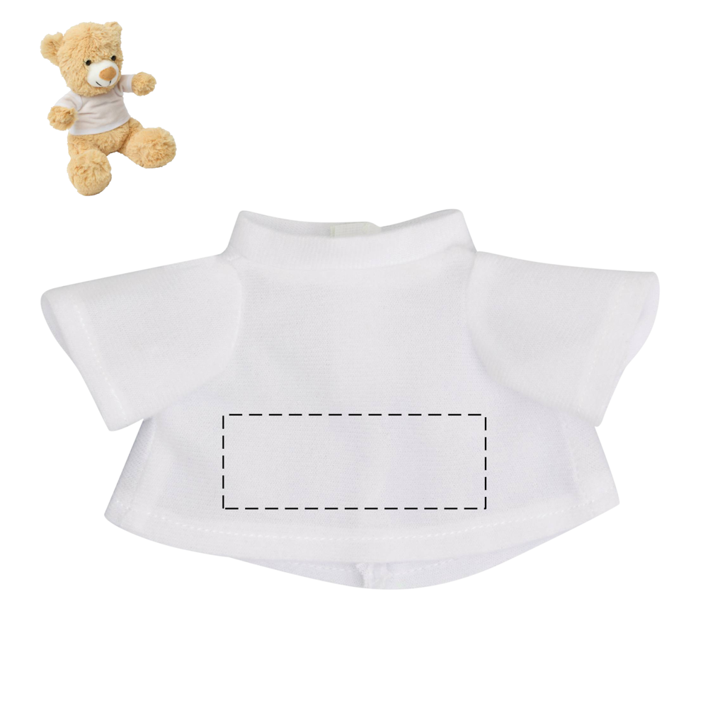 Pluche beer ALEXANDER in zittende houding met wit T-shirt (los bijgeleverd) voor bedrukken.