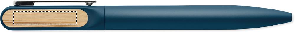 Balpen met draaimechanisme van gerecycled aluminium, draaimechanisme van gerecycled ABS en metalen clip met bamboe detail. Blauwe inkt.