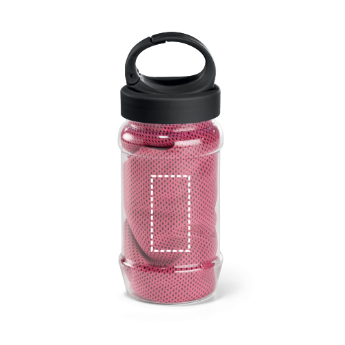 Set met een PP en PET fles en een polyamide en polyester sporthanddoek. Fles met handvat, praktisch om overal mee naartoe te nemen en inhoud tot 440 mL. Verfrissende handdoek die, als hij nat is, een paar uur koel blijft. Als het opwarmt, kan je het schudden om de frisheid te heractiveren. De handdoek is herbruikbaar en wasbaar in de wasmachine. Handdoek: 300 x 800 mm | Fles: ø65 x 183 mm