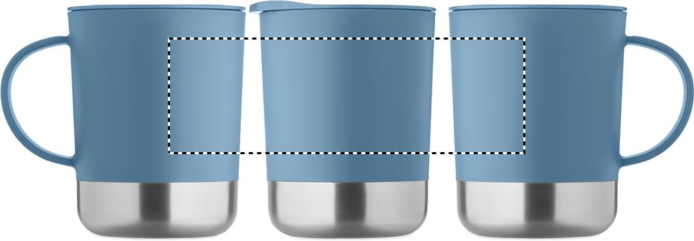Dubbelwandige roestvrijstalen mok met PP handvat.