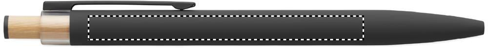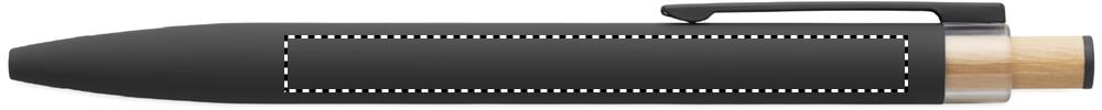 Gerecyclede aluminium balpen met een rubberen afwerking, bamboe drukknop en bamboe ring in de penhouder.