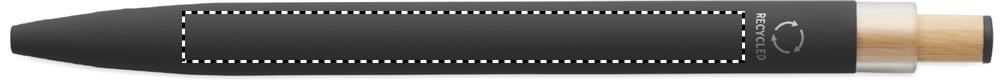 Balpen van gerecycled aluminium met bamboe drukknop en AS-kunststof detail.