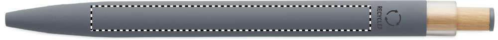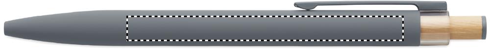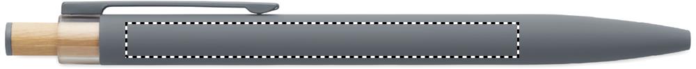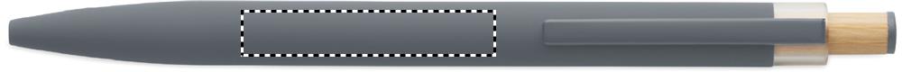 Gerecyclede aluminium balpen met een rubberen afwerking, bamboe drukknop en bamboe ring in de penhouder.