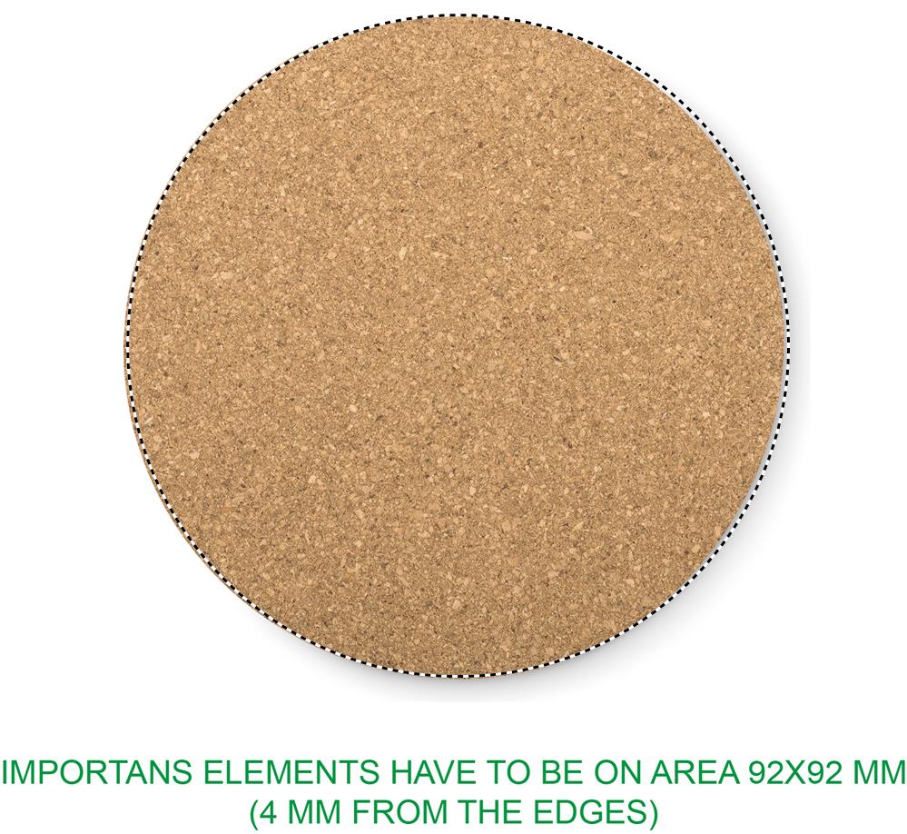 Ronde onderzetter van kurk. Kurk is een natuurlijk materiaal. Door de structurele aard en de porositeit van het materiaal kan het uiteindelijke drukresultaat per item afwijkingen vertonen.