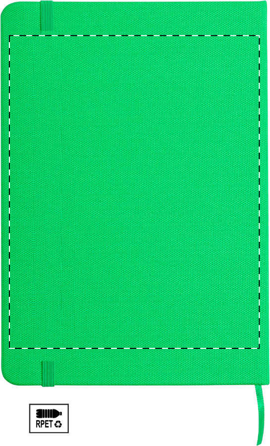 A5-notitieboek van rPET-polyester met deels laserbaar PU-voorvlak.