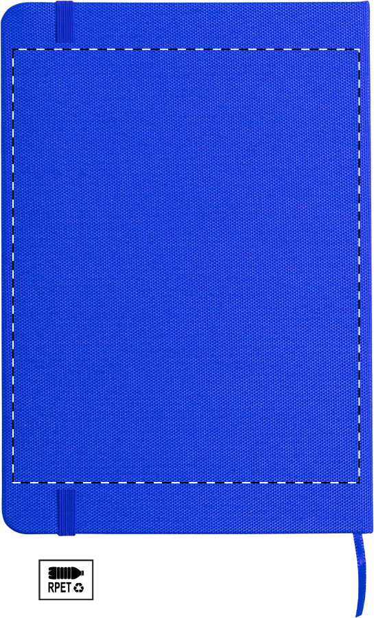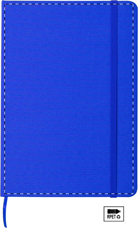 RPET polyester bekleed notitieboek met 80 gelinieerde vellen, boekenlegger en rubberen band. A5 formaat.