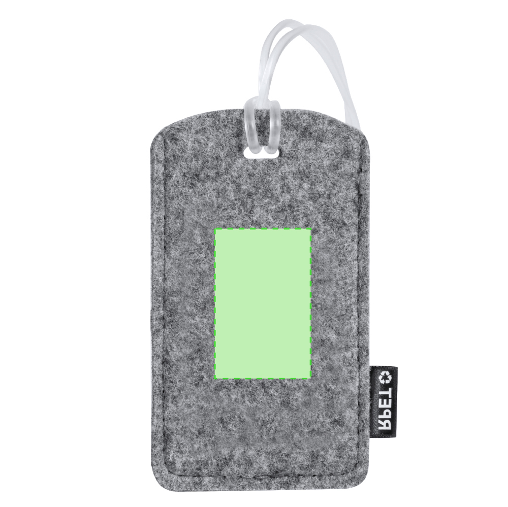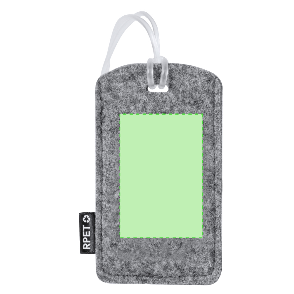 Bagage-etiket gemaakt van RPET-vilt. Ontworpen om aan elke koffer te bevestigen met de flexibele band en met een kaartje voor basisinformatie. Gemaakt van RPET-vilt, met venster en een RPET-label.