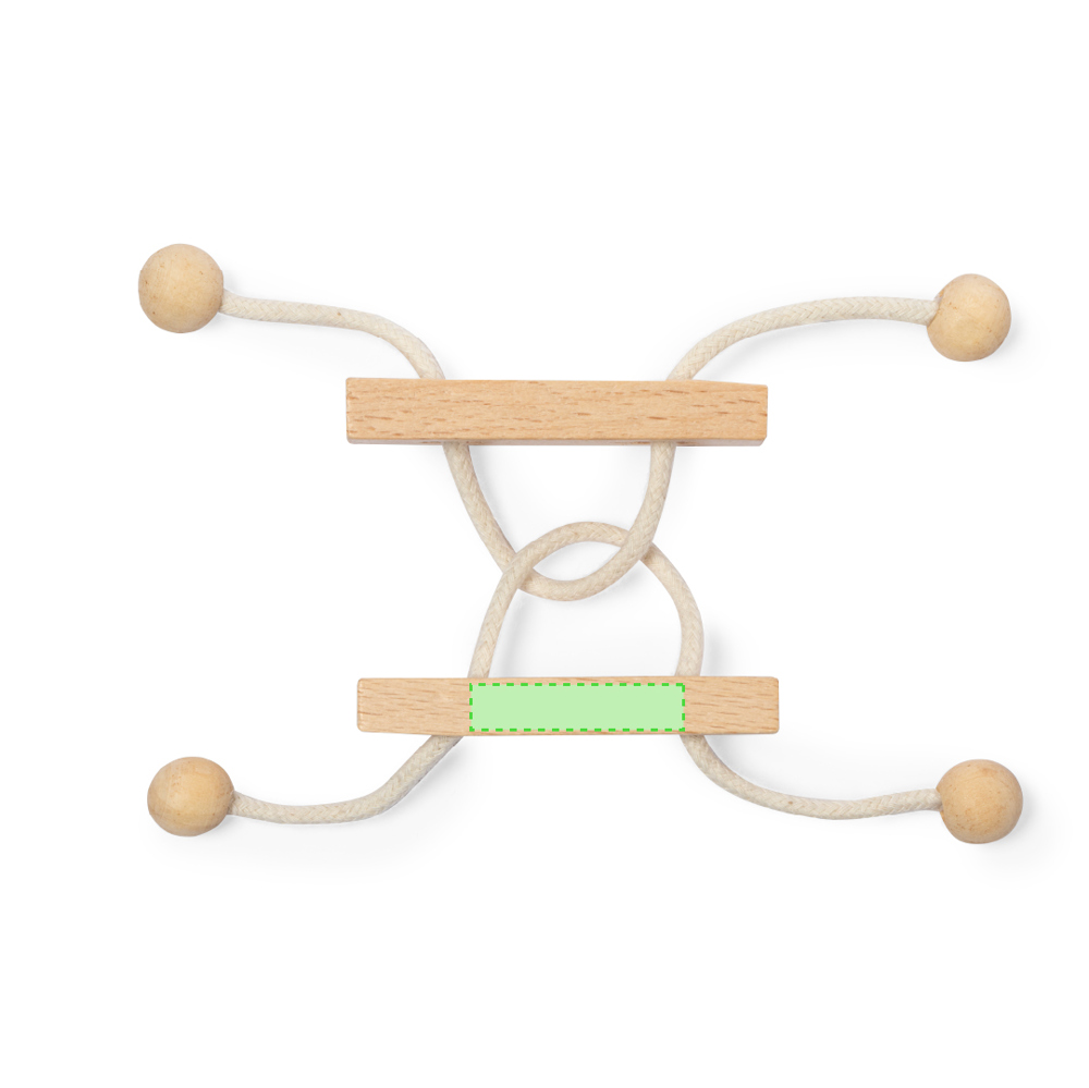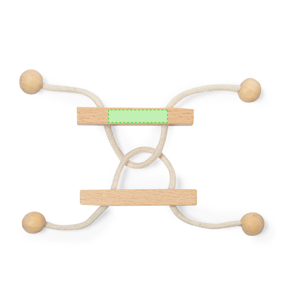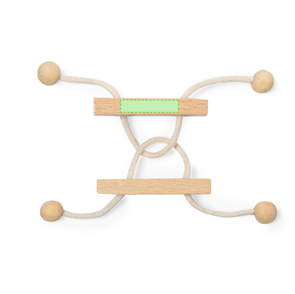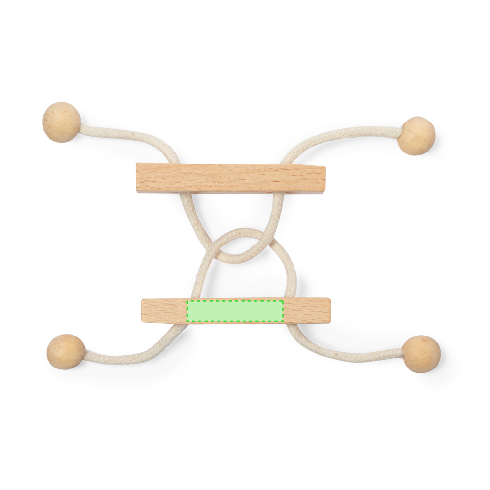 2-delig behendigheidsspel gemaakt van hout. Leuke puzzel van twee stukjes verbonden door een houten touwtje, met als doel de manier te vinden om de twee stukjes van elkaar te scheiden. Individueel gepresenteerd in een kraft-designdoos.