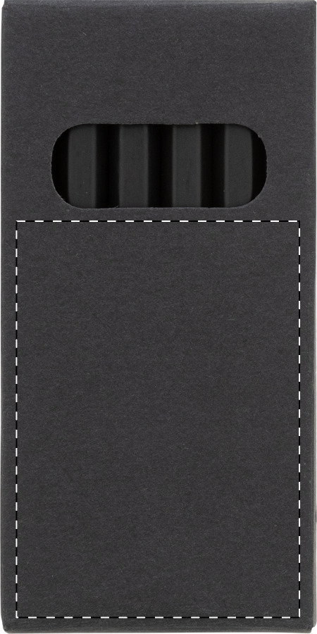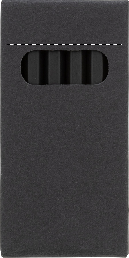 6-delige set zwart houten kleurpotloden in een zwarte doos van papier.