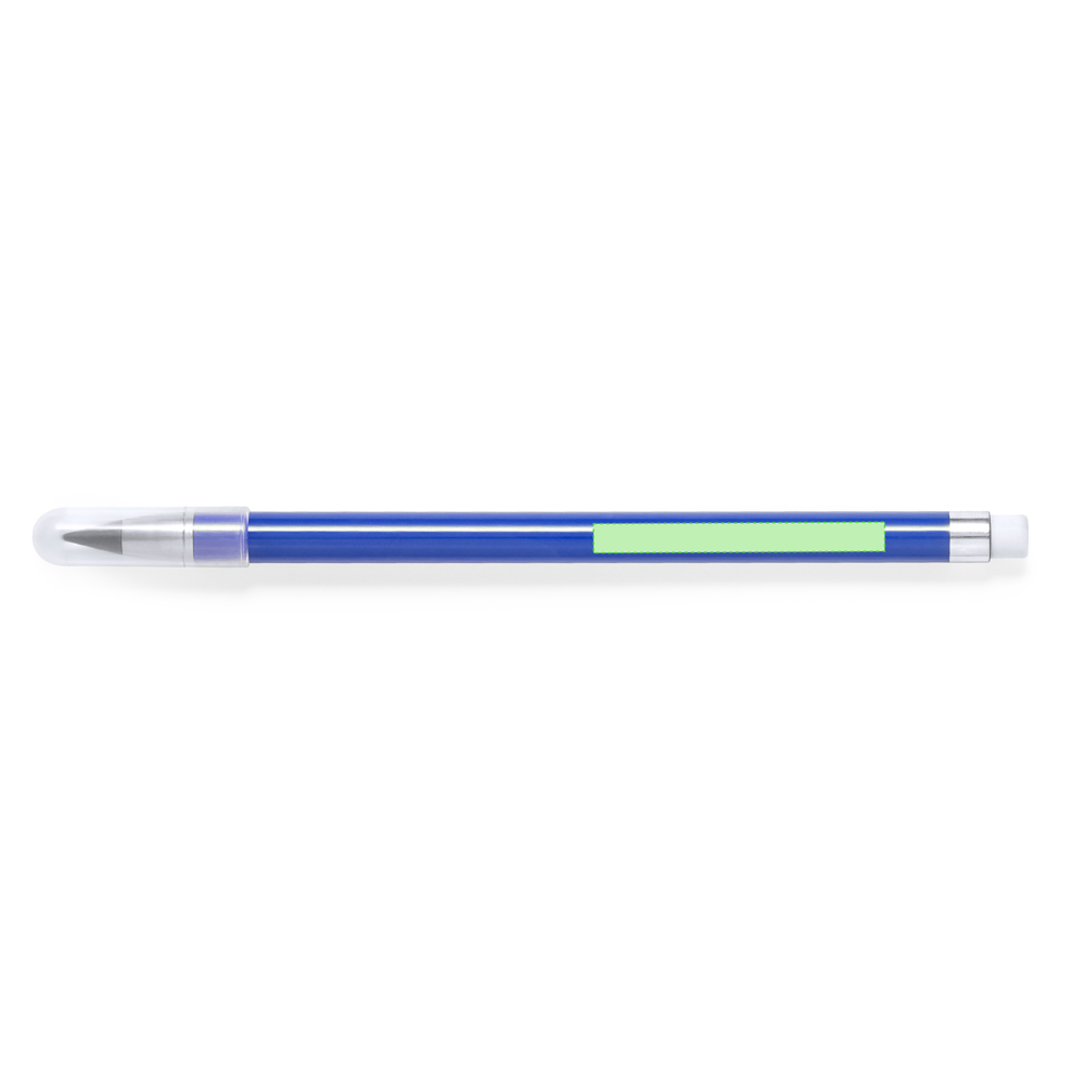 Eternal potlood gemaakt van duurzaam ABS. Herbruikbaar en oneindig te schrijven, om altijd hetzelfde potlood te gebruiken en geen afval te genereren. Inclusief gum bovenop het potlood, en een dopje om de punt te beschermen. Elegante stijl, waarbij gekleurde elementen worden gecombineerd met zilveren elementen. Verkrijgbaar in een breed scala aan kleuren.