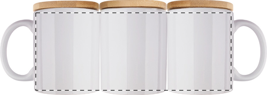 Vaatwasmachinebestendige, witte keramische mok met bamboe deksel voor sublimatiebedrukking, 300 ml.