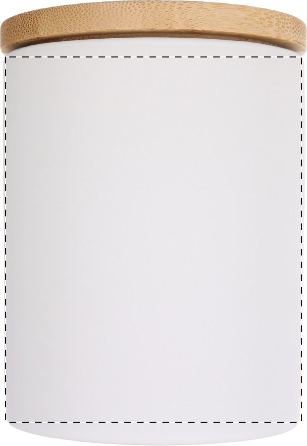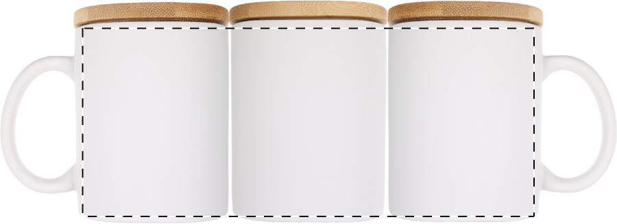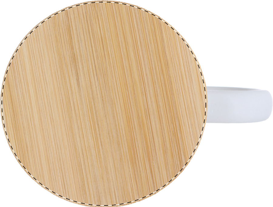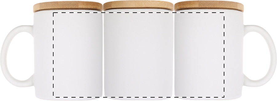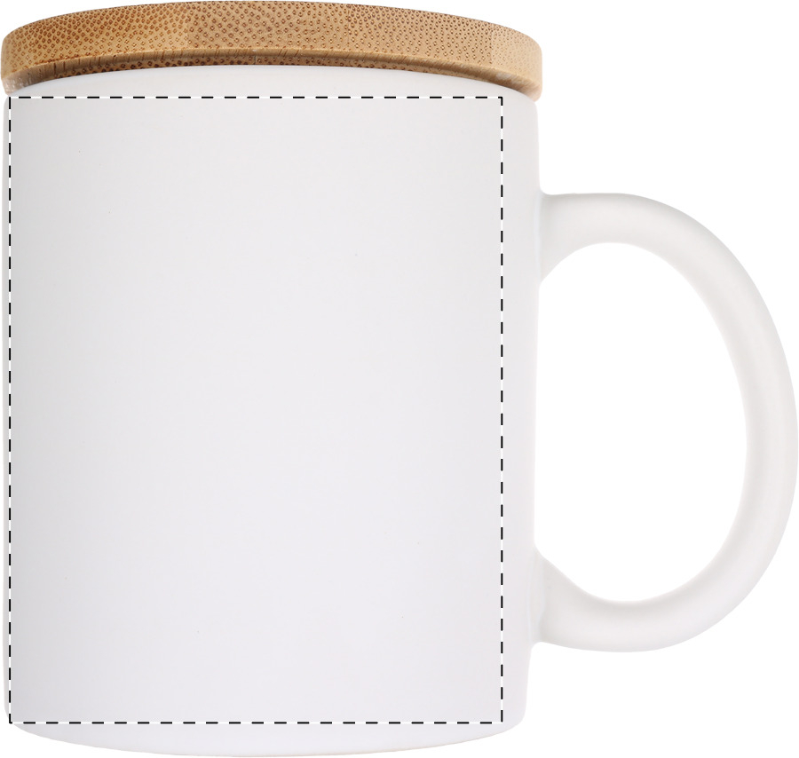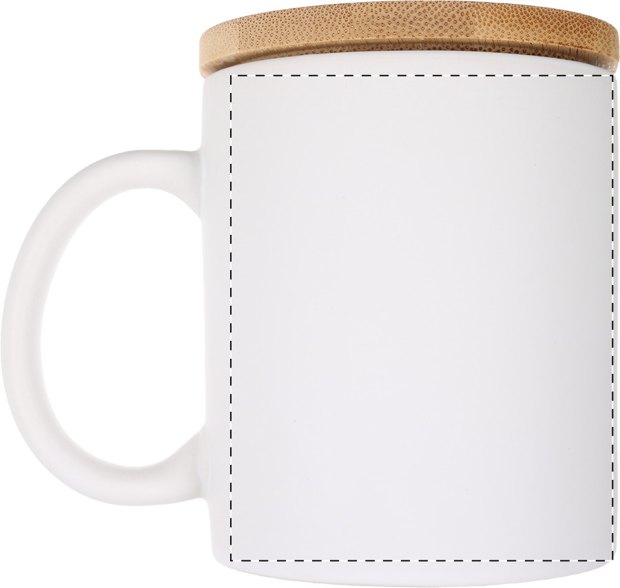 Keramische mok in matte afwerking met bamboe deksel in kartonnen doos. Inhoud: 370 ml.