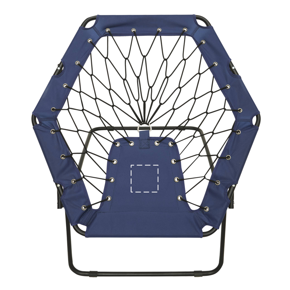 Bungee-stoel CHILL OUT: comfortabel zitoppervlak van elastisch touw, stabiel stalen frame met uitklapbare poten