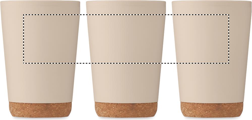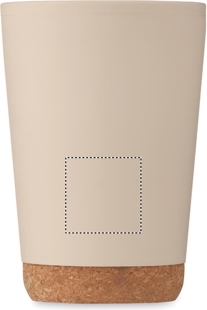 Dubbelwandige beker van PP met een kurken basis en een schuifdeksel met drinkopening in PS. Inhoud: 300ml.