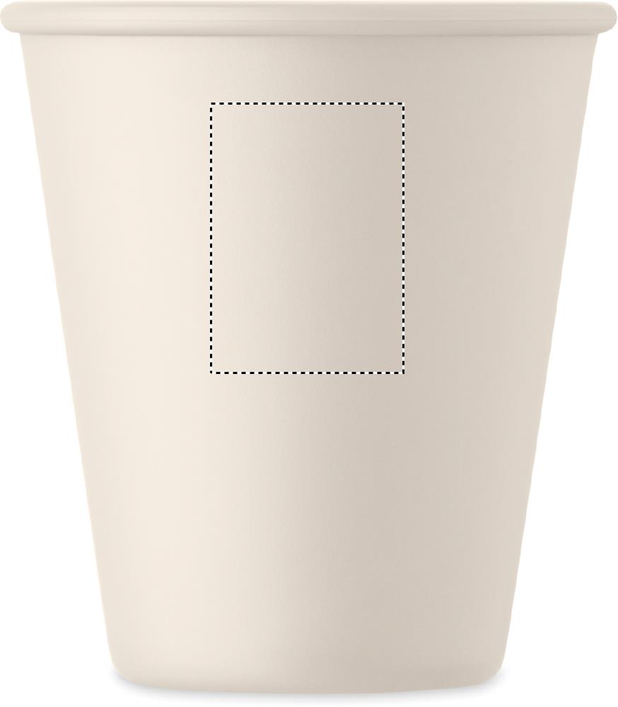 Herbruikbare enkelwandige beker in PLA maïs. Inhoud: 200ml. Omdat dit een enkelwandige mok is, kan er nog warmteoverdracht plaatsvinden.