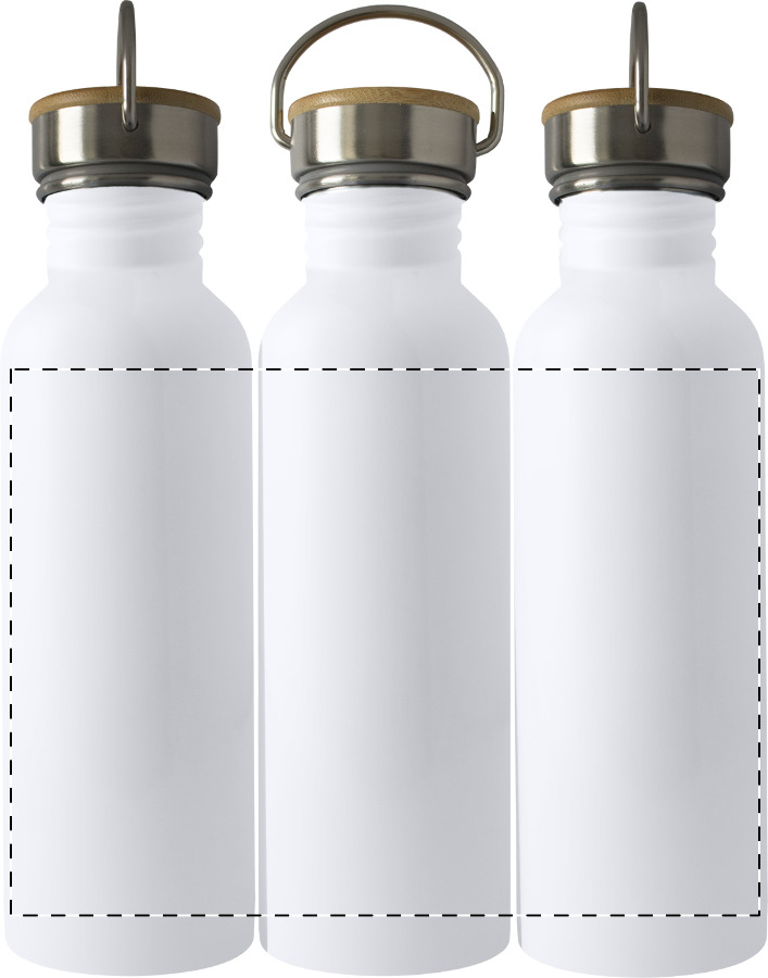 Gekleurde RVS sportfles met bamboe draagdeksel, 800 ml.