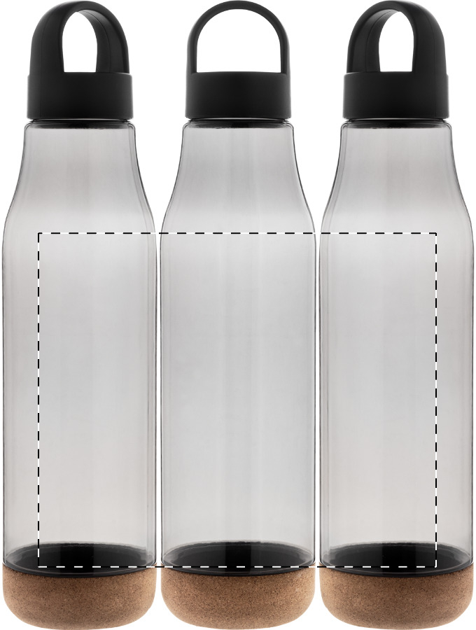RPET-fles met natuurlijke kurkbasis en PP-plastic draagdeksel. 720 ml. Niet geschikt voor koolzuurhoudende dranken.