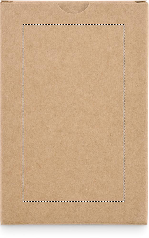 Houten dominospel en speelkaarten van gerecycled papier in kartonnen doosje. Geleverd in MDF doos.