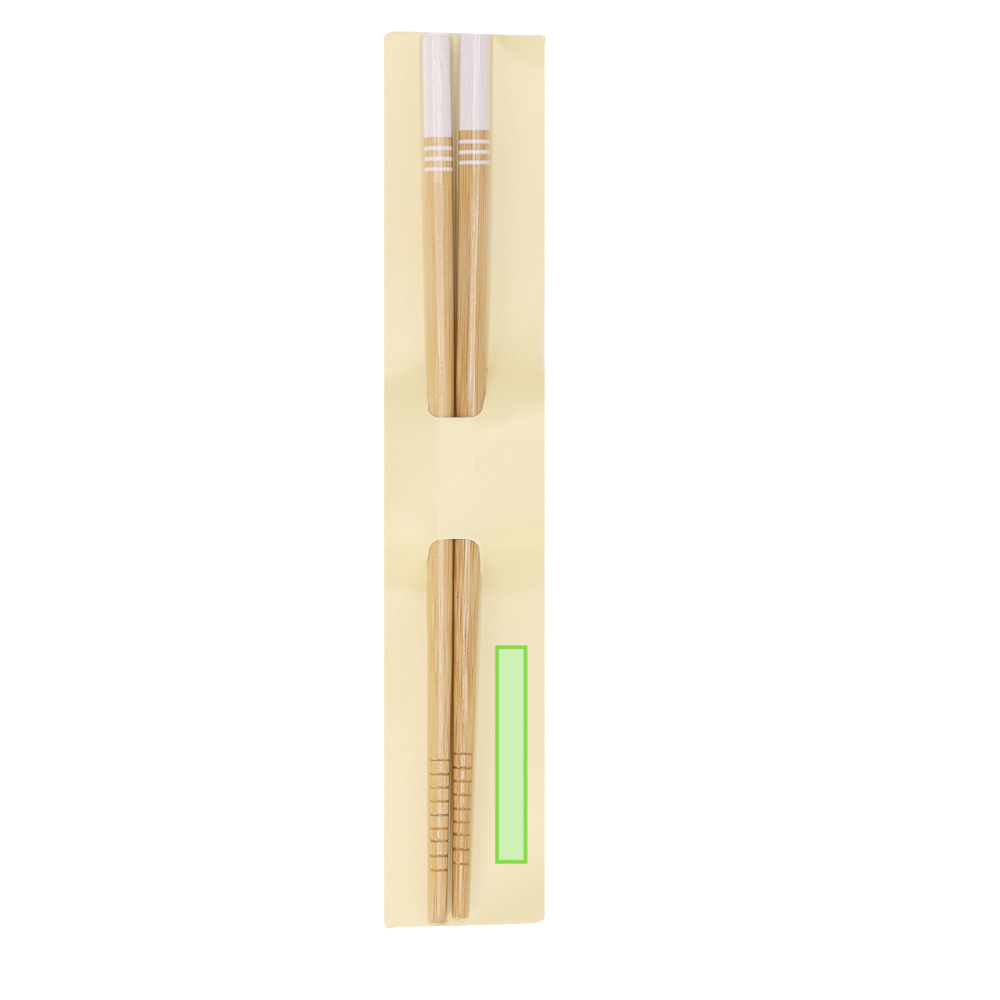 Set van 2 bamboe-eetstokjes met fijne afwerking met accenten in sobere kleuren. Gepresenteerd in een individuele, karton gestanste etui.
