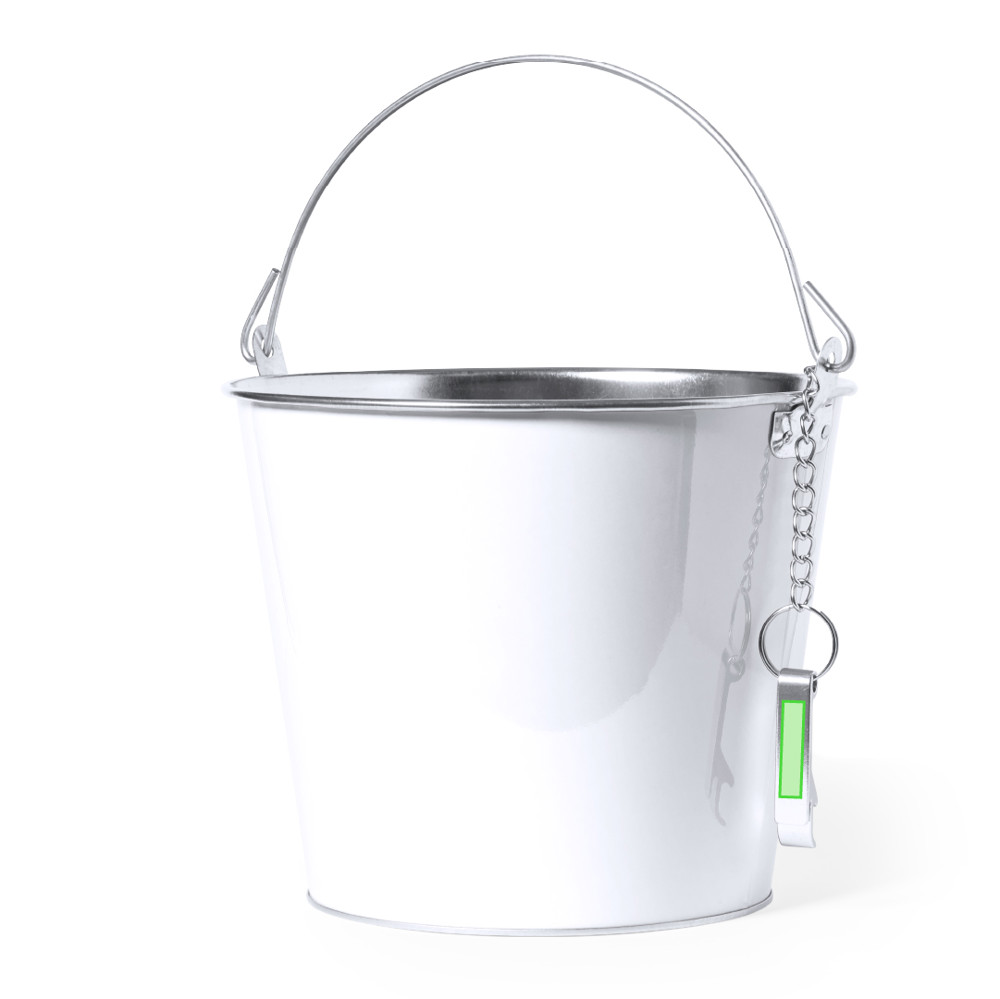 Metalen (ijs) emmer van 6 liter met handvat en aluminium opener inclusief ketting.
