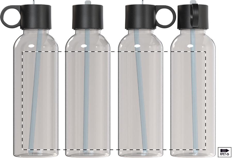 RPET bidon met PP flip-top drinkdeksel en geïntegreerd rietje.