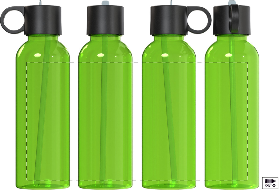 RPET bidon met PP flip-top drinkdeksel en geïntegreerd rietje.