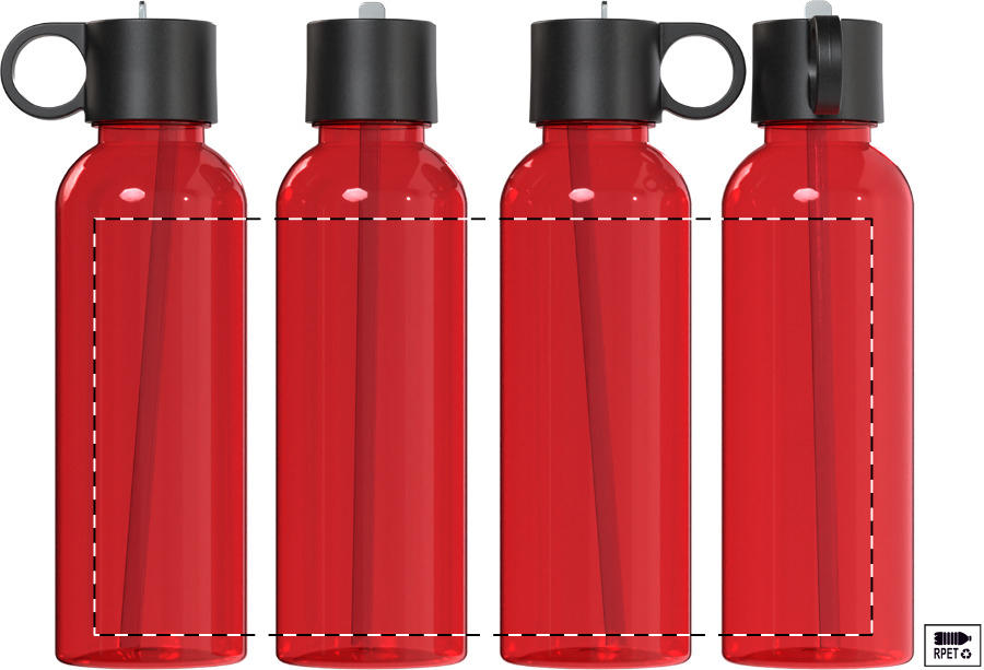 RPET bidon met PP flip-top drinkdeksel en geïntegreerd rietje.