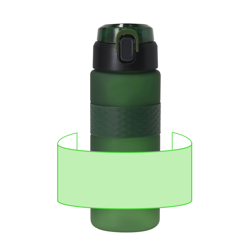 Opvouwbare fles met voetbalontwerp en een inhoud van 550 ml. Inclusief metalen ring met karabijnhaak voor praktisch vervoer. Schroefdop met nozzle. BPA-vrij.