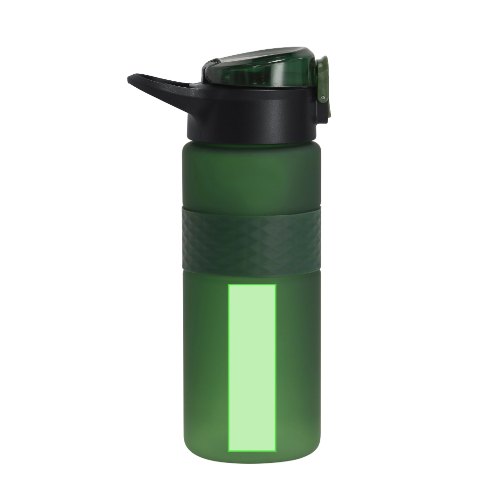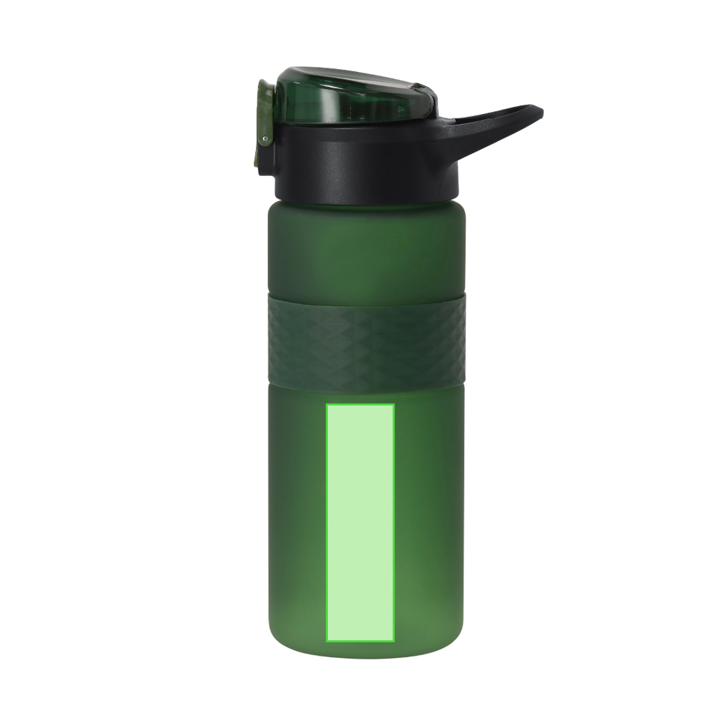 Tritan bidon van 500 ml. Slim veerdeksel met eenvoudige drukknop en veiligheidsvergrendeling. Schroefdop voor optimale afdichting en handvat voor comfortabel transport.