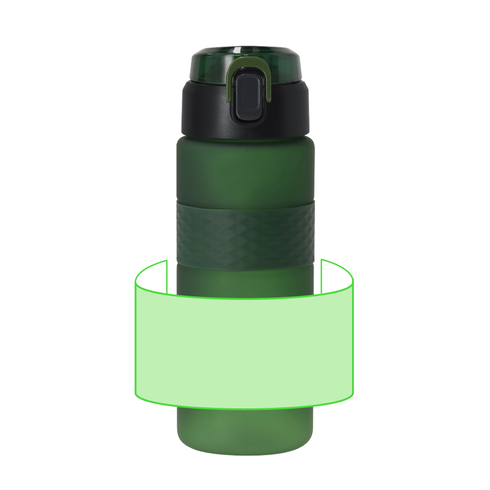 750 ml bidon van duurzaam RPET met mat-transparante afwerking. Slim deksel met veermechanisme, eenvoudig te openen via de frontknop, met veiligheidsvergrendeling. Schroefdop voor optimale afdichting en bijpassende handgreep voor comfortabel transport. BPA-vrij.