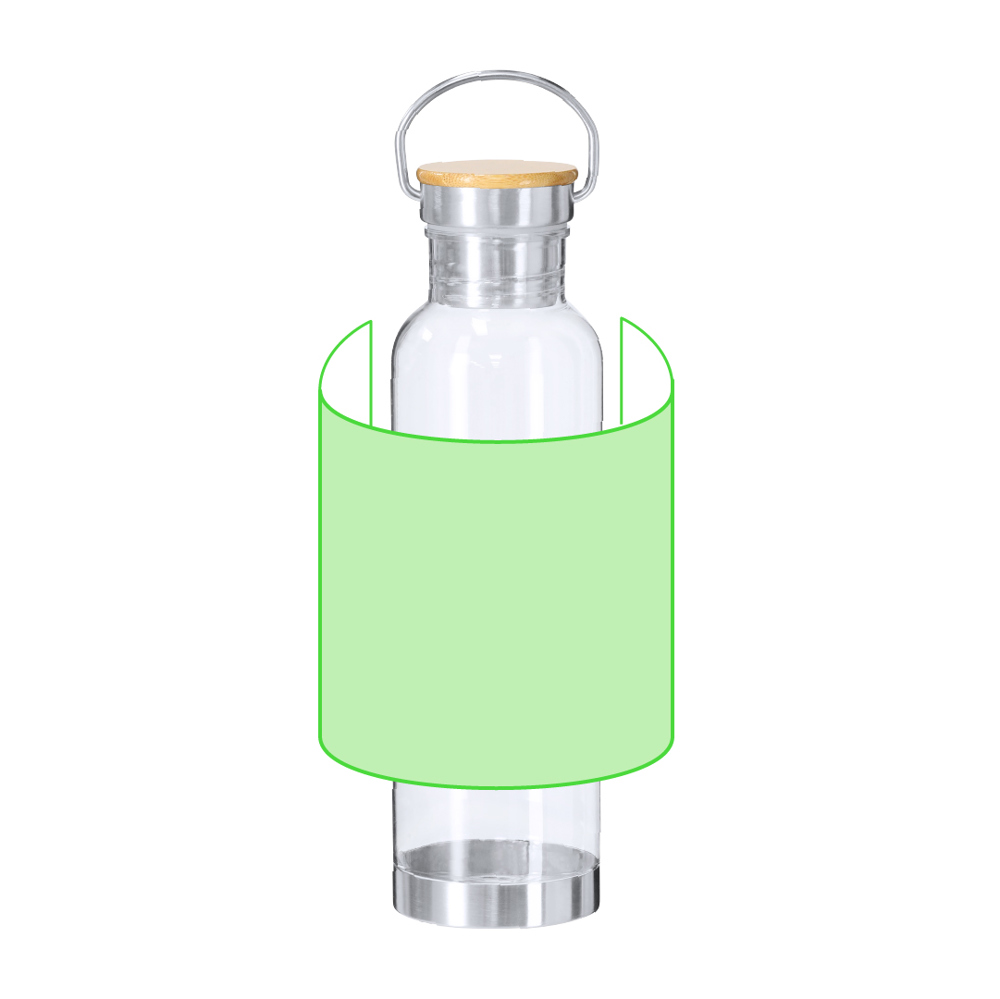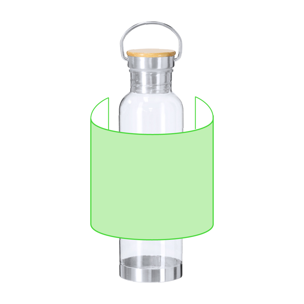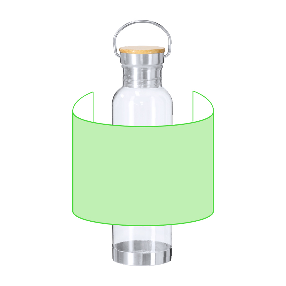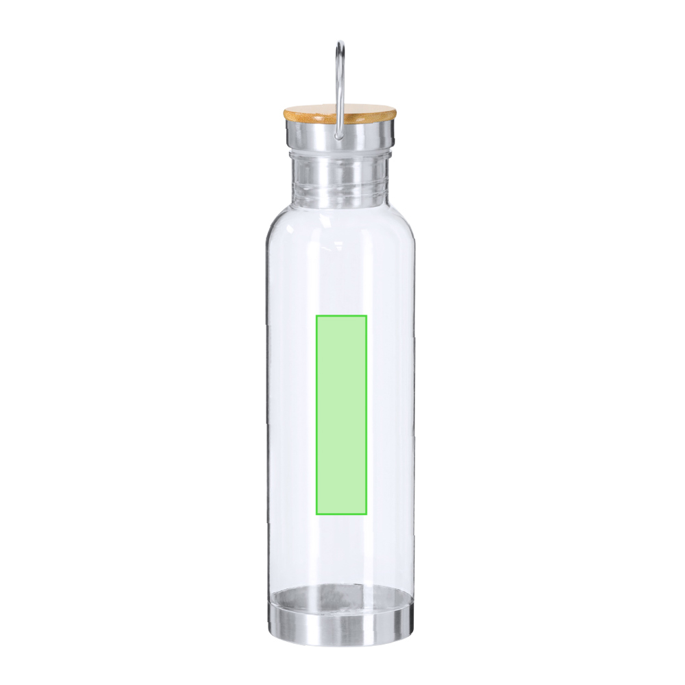 Bidon van 800 ml RPET met transparant RPET-lichaam. Schroefdop voorzien van roestvrijstalen draaghandgreep, bamboedop en roestvrijstalen bodem.RPET wordt gemaakt van gerecycled plastic, bevordert hergebruik van plastic afval en draagt bij aan duurzaamheid van de planeet. Materialen zoals bamboe stimuleren het gebruik van natuurlijke grondstoffen en verminderen vervuilende emissies. Bamboe komt van een zeer sterke en veelzijdige plant, met snelle groei en regeneratie, wat het een uitstekend alternatief maakt voor traditioneel hout.