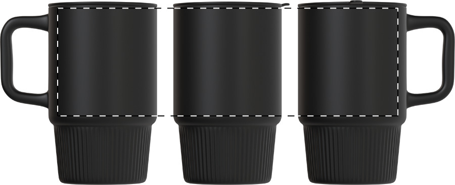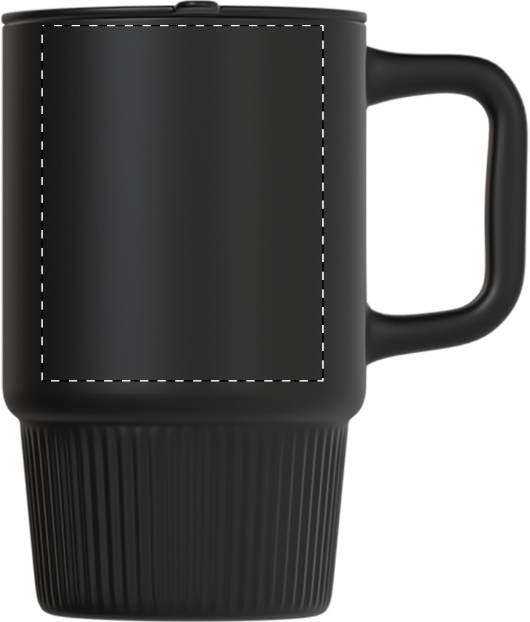 Hoge kwaliteit keramische reismok met matte buitenafwerking en PP kunststof drinkdeksel. 420 ml.