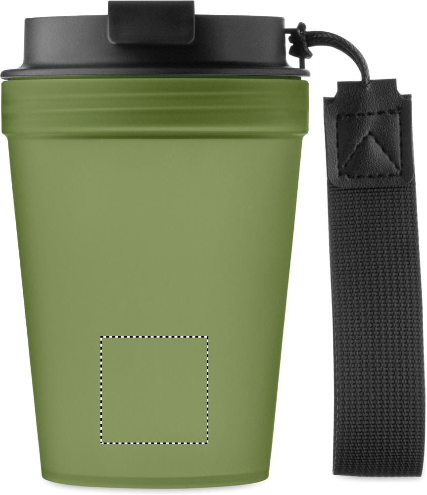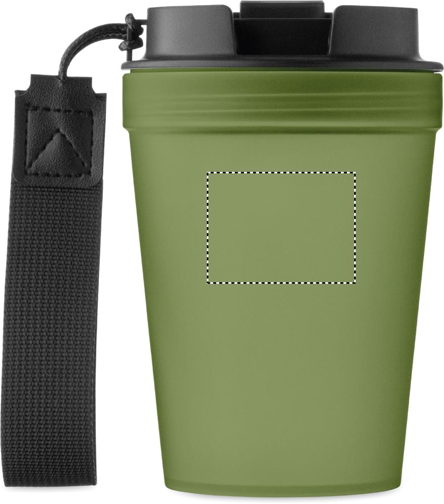Enkelwandige beker in PP, met RPET polyester band. Lekvrij. Inhoud: 300ml. Omdat dit een enkelwandige beker is, kan er nog warmteoverdracht plaatsvinden.