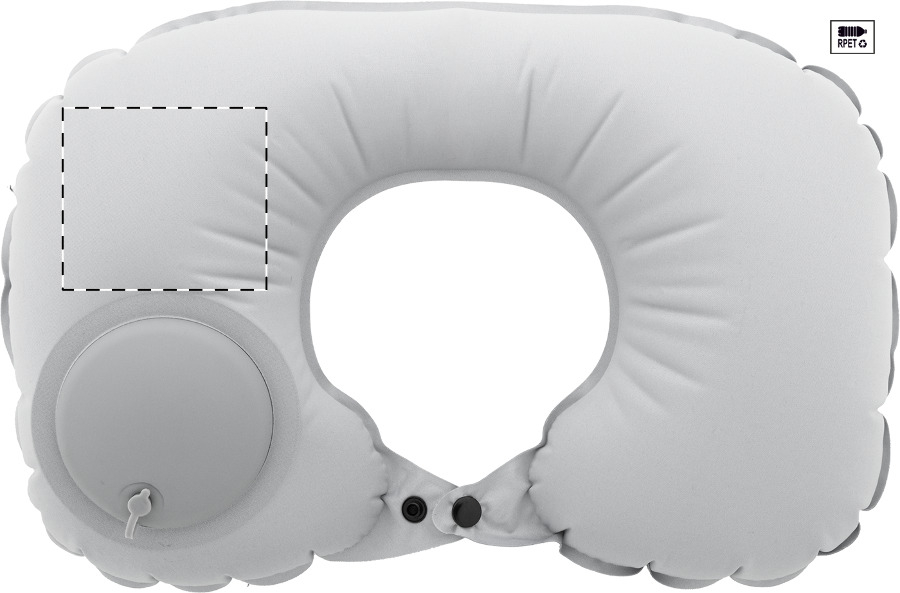 Opblaasbaar RPET polyester reiskussen met ingebouwde pomp voor eenvoudig opblazen en leeglopen. In bijpassende stof trekkoordzak. Met onderscheidend RPET-label.