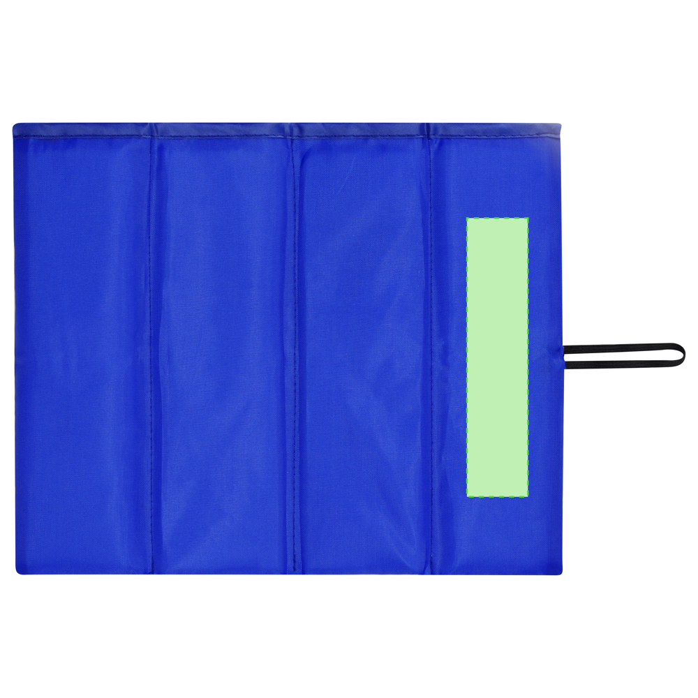 Opvouwbaar kussen van 210D nylon met PE-schuim. Opvouwbaar in 4 delen, met elastisch koord om het samen te houden. Geschikt voor grote evenementen.