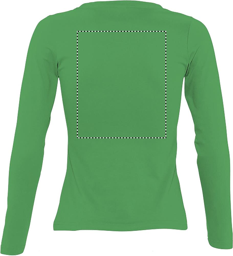 SOL'S MAJESTIC Dames t-shirt 150g/m² met lange mouwen. 100% halfgekamd katoen. Verstevigingsband in de nek. Ronde hals met ribboord elastaan. Diepe hals. Aansluitende snit. Manchetten zonder ribboord. Met zijnaad.