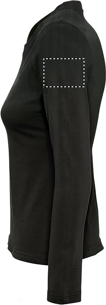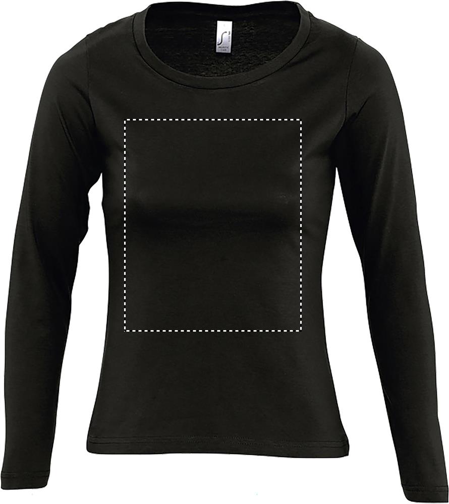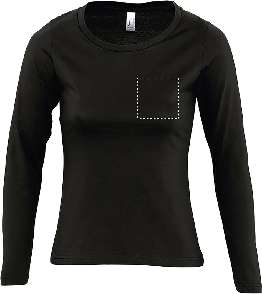 SOL'S MAJESTIC Dames t-shirt 150g/m² met lange mouwen. 100% halfgekamd katoen. Verstevigingsband in de nek. Ronde hals met ribboord elastaan. Diepe hals. Aansluitende snit. Manchetten zonder ribboord. Met zijnaad.