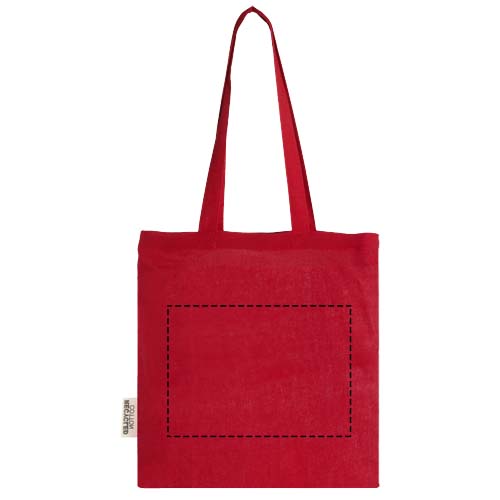De Madras draagtas gemaakt van 100% GRS gecertificeerd gerecycled katoen is de perfecte tas om weg te geven tijdens elk evenement, congres of om te gebruiken als boodschappentas voor kleine boodschappen. De katoenen dichtheid van 140 g/m² katoen maakt de tas stevig, duurzaam en geschikt om zware voorwerpen in het hoofdvak te dragen. Met de 30 cm lange schouderhandgrepen is deze draagtas makkelijk mee te nemen. De printmethoden die beschikbaar zijn voor deze draagtas zijn ook GRS-gecertificeerd, zodat de hele leveringsketen transparant en gecertificeerd is. Geschikt voor een gewicht tot 5kg.