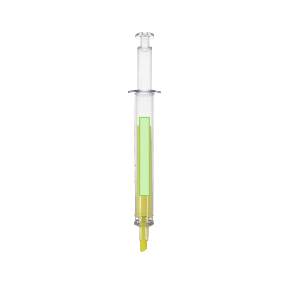 Originele marker met spuitontwerp en transparante behuizing. Fluorescerende gele inkt.