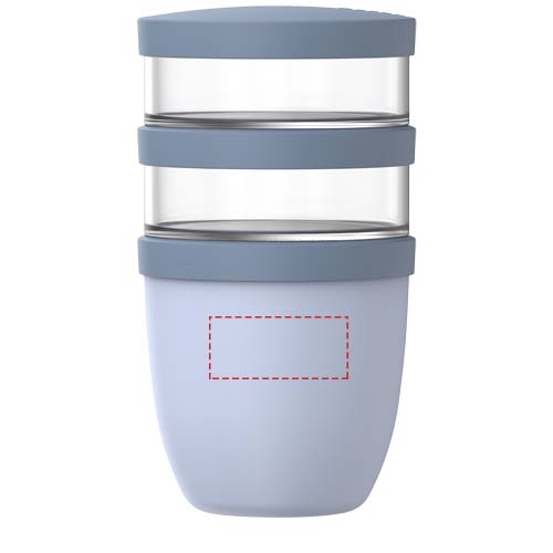 De Ellipse lunchpot met drie onderdelen heeft drie aparte compartimenten om ingrediënten netjes gescheiden te houden. Elke container heeft een eigen deksel, waardoor smaken en texturen pas mengen wanneer je gaat eten. De lunchpot houdt voedsel 6 tot 8 uur warm of tot 12 uur koud. De twee bovenste transparante containers hebben elk een inhoud van 200 ml, de onderste container 500 ml. De buitenkant blijft koel en droog. Handwas wordt aanbevolen; de kunststof onderdelen van het deksel zijn vaatwasmachinebestendig. BPA-vrij.