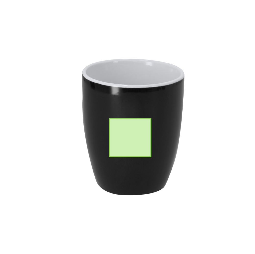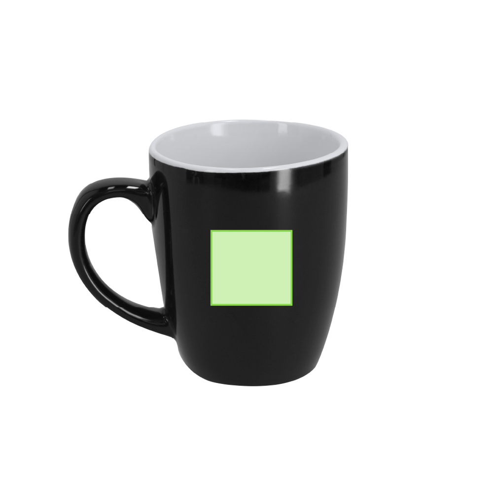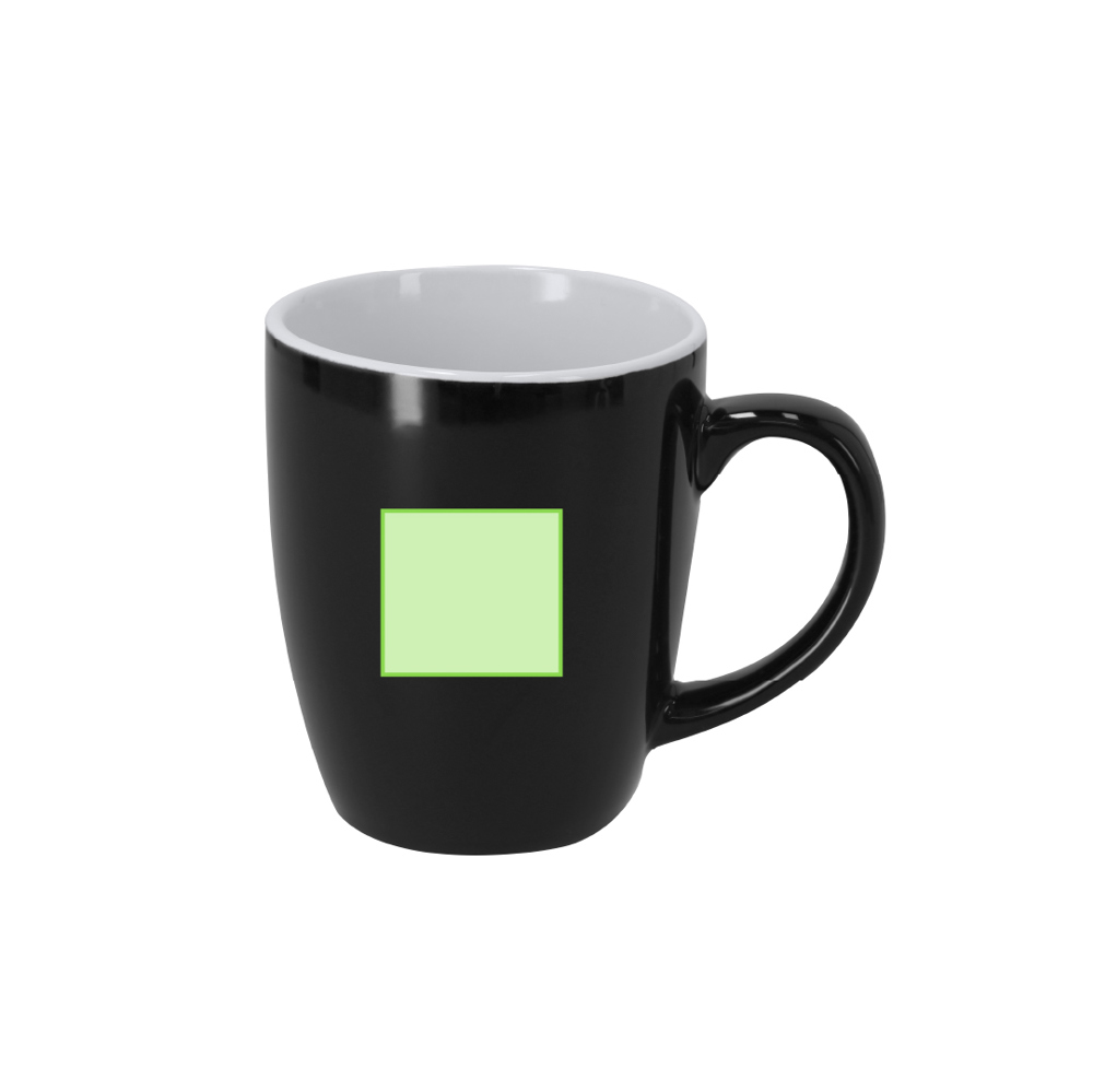 350 ml keramische mok met een glanzende buitenafwerking in kleur en een glanzend witte afwerking binnenin.