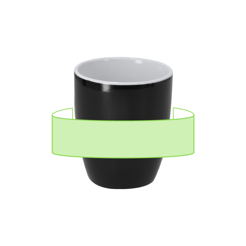 Keramische mok met een zachte, rubberen buitenkant en een inhoud van 300 ml. We graveren uw logo naast het handvat.