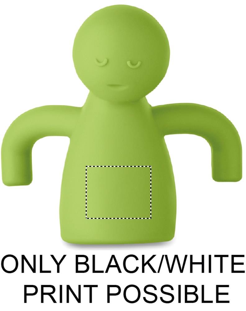 Grappige thee-infuser voor losse theebladeren. Vorm van een mannetje in siliconen en filter van roestvrij staal.