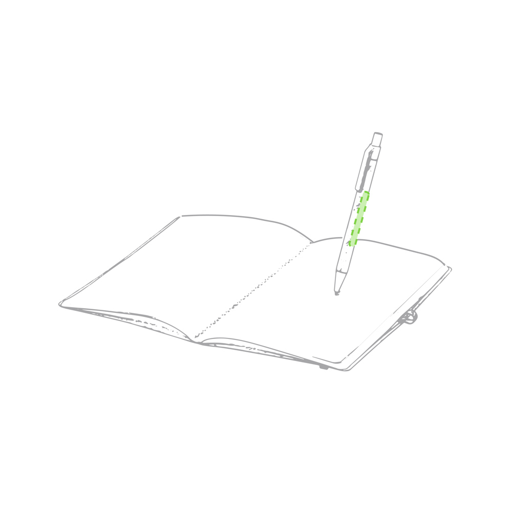 Natuurlijn Set van notitieboekje en pen. Inclusief notitieboekje van gerecycled karton, met penhouder en bijpassend sluitlint, van 60 blanco vellen. Balpen met opdrukmechanisme, met behuizing van gerecycled karton en accessoires van tarwestro -blauwe inkt-. Badge van tarwestro op het bovenste deel van de balpen.