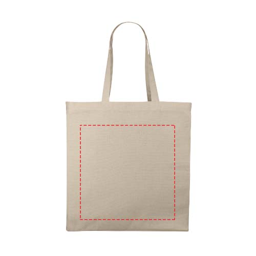 100% katoenen tas (120 g/m²) met 100% katoenen mesh aan de voorkant (100 g/m²).