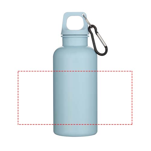 Altijd gehydrateerd blijven is mogelijk met deze duurzame maar toch lichte waterfles van 400 ml, gemaakt van RCS-gecertificeerd gerecycled PET. Het is de perfecte metgezel tijdens het sporten, op dagtrips of op kantoor. De enkelwandige Oregon-fles heeft een draaideksel en biedt voldoende ruimte om elk soort logo toe te voegen. Bevestig de meegeleverde karabijnhaak (niet geschikt om mee te klimmen) stevig aan een tas om verlies te voorkomen. Geproduceerd volgens het door EFSA goedgekeurde PET-recyclingproces.
