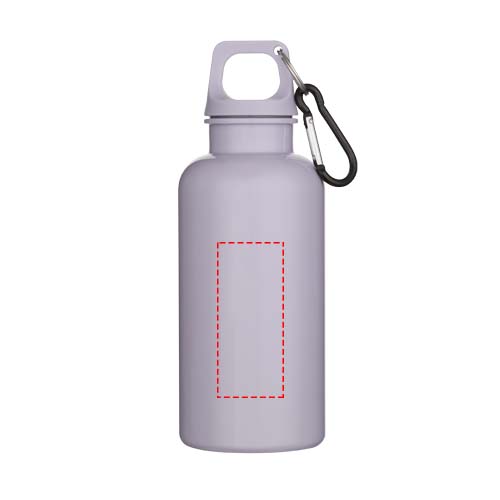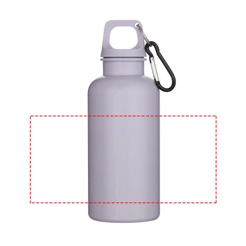 Altijd gehydrateerd blijven is mogelijk met deze duurzame maar toch lichte waterfles van 400 ml, gemaakt van RCS-gecertificeerd gerecycled PET. Het is de perfecte metgezel tijdens het sporten, op dagtrips of op kantoor. De enkelwandige Oregon-fles heeft een draaideksel en biedt voldoende ruimte om elk soort logo toe te voegen. Bevestig de meegeleverde karabijnhaak (niet geschikt om mee te klimmen) stevig aan een tas om verlies te voorkomen. Geproduceerd volgens het door EFSA goedgekeurde PET-recyclingproces.