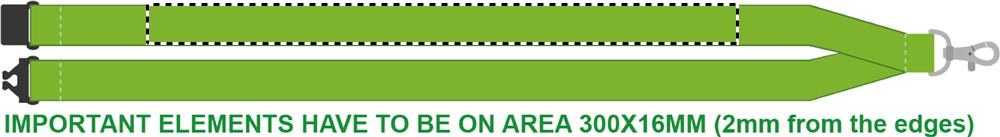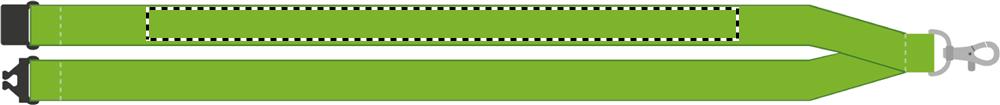 Polyester lanyard met veiligheidssluiting, kunststof gesp en karabijnhaak.
