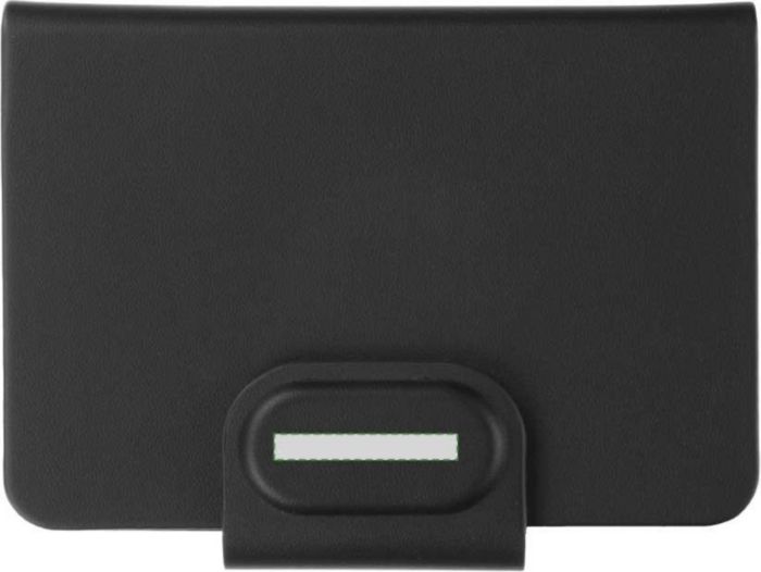 PowerBank-kaarthouder gemaakt van elegant aluminium. Met 5 compartimenten, een beveiligingsslot en een RFID-beschermingssysteem, ontworpen om ongeautoriseerde toegang tot contactloze kaarten te blokkeren. Hij heeft een hulpbatterij met een capaciteit van 2000 mAh. Uitgang en ingang in type C, kabel inbegrepen. Bevat een kenmerkend RFID-logo.