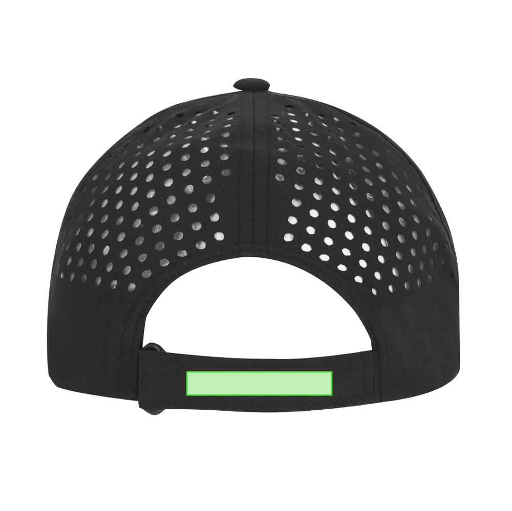5-delige microvezelkap, achterkant met geperforeerd ontwerp, voor optimale ademhaling en verstelbare klittenbandsluiting.